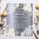 For an elegant and romantic 25h wedding anniversary, silver wedding. A dark faux silver looking background decorated with white florals, roses, white lace. Personalize and add your names and details.