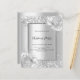 Faux silver looking background decorated with florals, flowers and faux silver glitter, sparkles. Personalize and add your party details. Black letters.