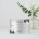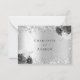 A faux silver metallic looking background, decorated with sparkling faux glitter and florals. Personalize and add the reply by date and your names.