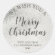 Silver Foil and Gray Script Merry Christmas Classic Round Sticker