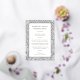 Rectangular wedding menu template with a silver foil border. Gray text is printed over a white panel bordered by a geometric pattern which is the foil part of this card. Reverse is solid gray. Only the border will be foil and you may change it to gold or rose gold.