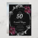 Silver Frame Burgundy Roses Black 50th Birthday Invitation