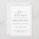 Make your announcement unforgettable with this minimalist silver “Free Drinks” Save the Date card. Featuring a sleek, modern design with a playful twist—perfect for fun, casual, or contemporary wedding celebrations.