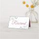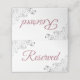 These elegant place cards are designed to let your guests know which seats are reserved for family and other special guests. They feature a white background with frilly ornate silver faux foil floral accents in the corners, and dusty rose or mauve pink lettering reading "reserved." Perfect for weddings or any other special occasion.