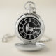 A shiny silver silhouette German Shepherd Dog is the feature at the center of this elegant pocket watch. The dog image is framed by matching silver Roman numerals, and placed on a dramatic black background. Perfect for anyone who loves a GSD.