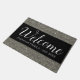 Welcome doormats with a classy silver glitter print . Personalize with family name and established year.