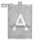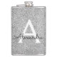 Silver Faux Glitter and Sparkle Elegant Monogram Flask. This Flask can be customized to include your initial and first name. The Silver Flask is perfect for a birthday or bachelorette party celebration.