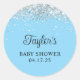 Silver Glitter Baby Blue Shower Classic Round Sticker