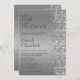 Plain white envelopes are included with paper invitations and will come to fit the invitation size you select. If you don’t need the envelopes, you may choose to not receive them by selecting the dropdown below "Envelopes" and choosing "None." If you’d like to have a design on your envelopes, you can browse all of these available envelopes to find the design that complements your Silver Glitter Bat Mitzvah Invitation.