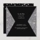 Silver Glitter and Black Envelope Style Square. Photo Wedding Save the Date. Back with Bride and Groom Photo last names as well as the text Wedding. Silver Glitter confetti. Website. Black and white filter applied to photo.