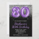 Silver Glitter Black Royal Purple Number 80 Invitation
