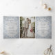 Silver Glitter Blue Snowflake Winter Photo Wedding Tri-Fold Program with front and back photos