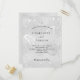 A modern, elegant and minimalist wedding invitation. Faux silver metallic looking background decorated with faux glitter dust and a butterlfy as watermark. Personalize and add your names and wedding details. Black colored letters.