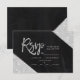 Silver glitter chalkboard typography wedding Rsvp, Silver typography on black chalkboard silver glitter color block and faux silver geometric stripes chic wedding rsvp , perfect for elegant wedding,
