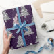 Silver Glitter Christmas Tree Pattern on Indigo Wrapping Paper