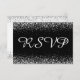Silver Glitter Confetti on Pure Black RSVP Card