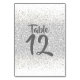 An elegant monogram wedding table number card with a sprinkled silver confetti glitter on a white background. A striking design for your special day. Also available are matching wedding place cards, menus and wedding invitations. The font's style, color and placement can also be changed any way you like.