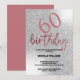Silver Glitter Coral Calligraphy Birthday Invitation