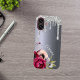 Silver glitter drip metallic burgundy flowers name Case-Mate iPhone case