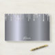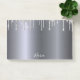 Decorated with faux silver glitter drip, paint drip look. Elegant faux silver background. Template for Your name in light gray written with a hand lettered style script.