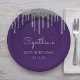 Silver Glitter Drip Purple 60th Birthday Party Paper Plates