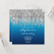 Silver Glitter Drip Sky Ocean Blue Ombre Birthday Invitation