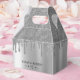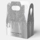 Silver glitter drip wedding favor box. Personalize it with your name and anniversary date.