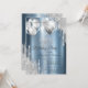 A modern, chic, and glamorous with silver glitter drips, and balloons on a blue metallic background.