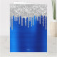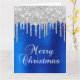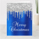 Silver Glitter Drips Blue Metallic Merry Christmas Card