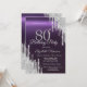 Silver Glitter Drips Dark Purple 80th Birthday Invitation