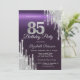 Silver Glitter Drips Dark Purple 85th Birthday Invitation