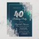 Silver Glitter Drips Green 40th Birthday Invitation