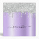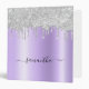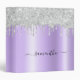 Silver Glitter Drips Lavender Shimmer Glam Name 3 Ring Binder