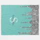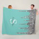 Silver Glitter Drips Light Teal Monogram Name Fleece Blanket