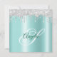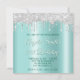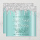 Silver Glitter Drips Light Teal Ombre Drop Shadow Invitation