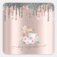 Silver Glitter Drips Mixer Flowers Rose Gold Square Sticker