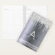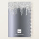 A faux silver looking background with elegant faux silver glitter drips, paint dripping look. Personalize and add a name, monogram letter and a title. The name is written in white with a large modern hand lettered style script with swashes. Gray and black colored text. To keep the swashes only delete the sample name, leave the spaces or emoji's in front and after the name.