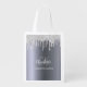 Silver glitter drips monogram initials grocery bag