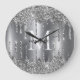 Silver Glitter Drips Monogram Personalized Large Clock