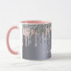 Silver glitter drips monogram pink name script mug