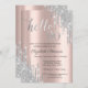 Silver Glitter Drips Rose Gold 90th Birthday Invitation