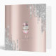 Silver Glitter Drips Rose Gold Monogram Cupcake 3 Ring Binder