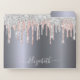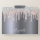 Faux silver looking background, and faux glitter drips in faux silver and rose gold, pink. Personalize and add your name. The name is written with a modern hand lettered style script with swashes in white. To keep the swashes only delete the sample name, leave the spaces or emoji's in front and after the name. Perfect for school or your home office.