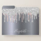 Silver glitter drips rose gold monogram school file folder