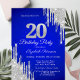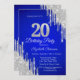 Silver Glitter Drips Royal Blue 20th Birthday Invitation