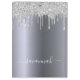Girly and glamorous. A faux silver metallic looking background with faux glitter drips, paint dripping look. Personalize and add a name. The name is written with a modern and trendy hand lettered style script with swashes. White colored letters.