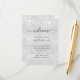 A modern, elegant wedding program, timeline. Faux silver metallic looking background decorated with faux silver glitter dust. Personalize and add your names and wedding details. Black colored letters. If you have more text it's possible to reduce the line space.