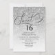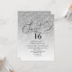 Silver Glitter Fancy Script Sweet 16 Birthday Invitation