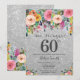 Silver Glitter Floral Surprise 60th Birthday Invitation