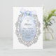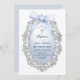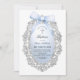 Silver Glitter Frame Blue Bow Baptism Invitation
